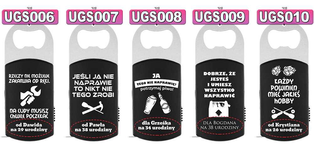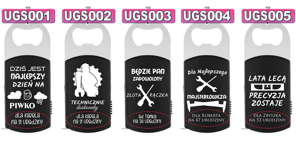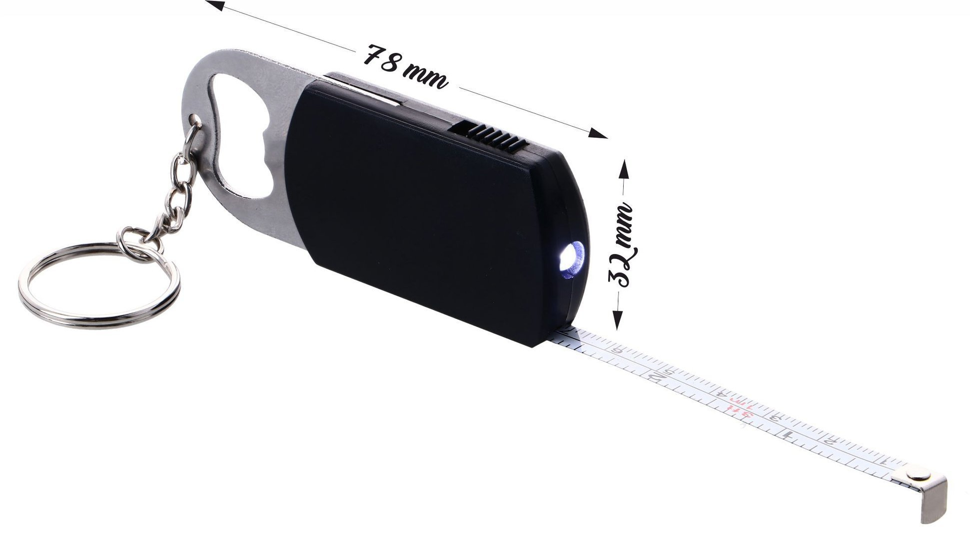 - metalowy brelok: miarka - otwieracz - latarka