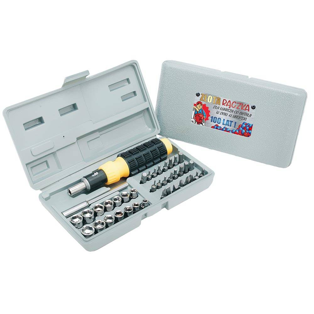 • komplet zawiera 41 najważniejszych narzędzi dla każdego majsterkowicza. Całość została zamknięta w kompaktowym opakowaniu . Po złożeniu mieści się w dłoni, jest łatwy do przechowywania.