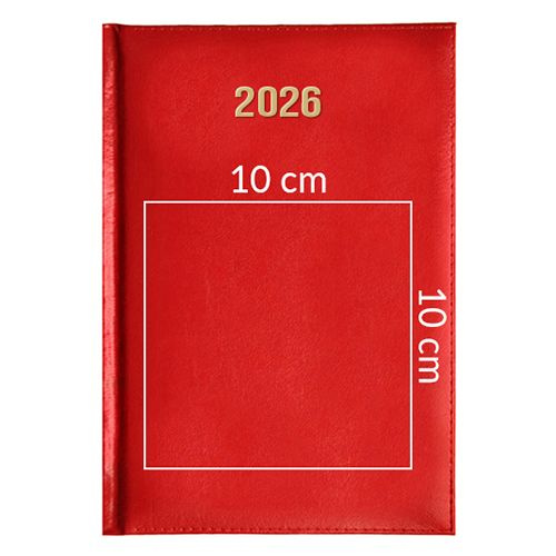 Kalendarz wyróżnia się przede wszystkim wytrzymałą skórzaną okładką w kolorze czerwonym.