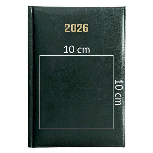 Kalendarz wyróżnia się przede wszystkim wytrzymałą skórzaną okładką w kolorze zielonym.