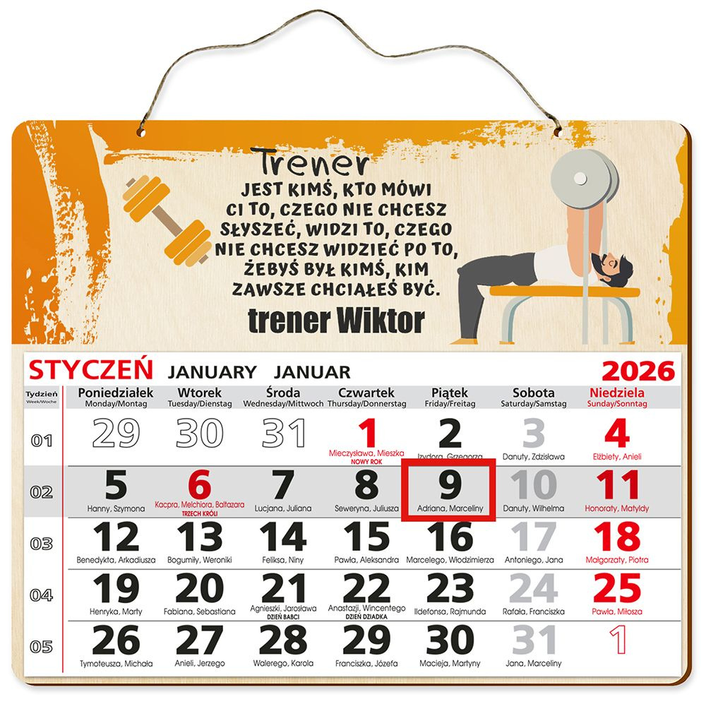 • DREWNIANY KALENDARZ 2026 PREZENT TRENER DIETETYK POD CHOINKĘ ŚWIĘTA