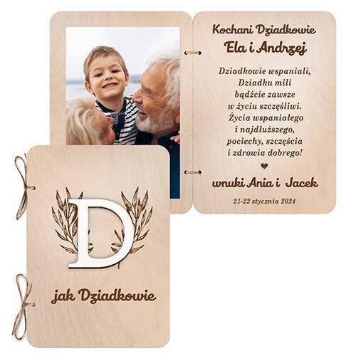 Na okładce ramki znajduje się biała, wypukła literka D jak Dziadkowie