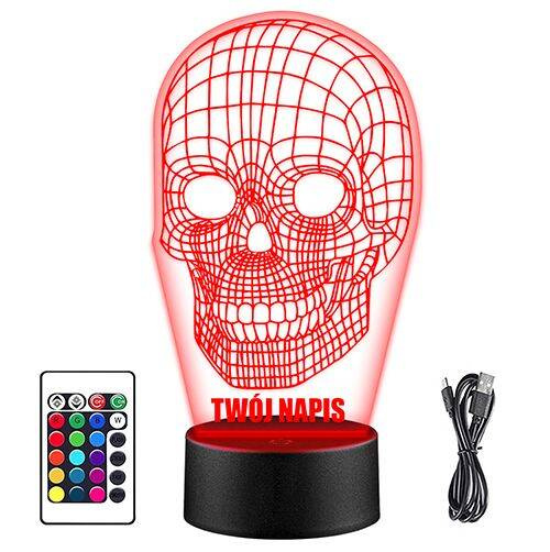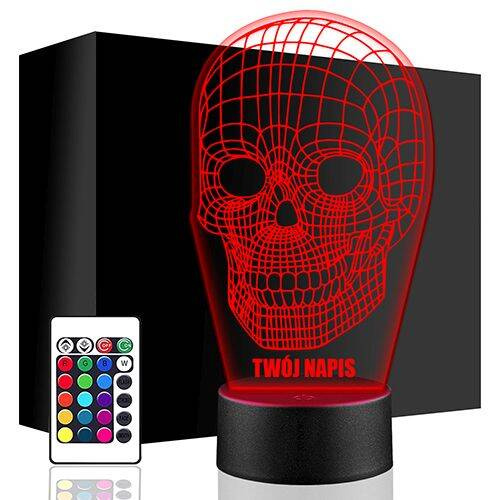 LAMPKA NOCNA CZACHA CZASZKA 3D LED KOLORY + PILOT z własną dedykacją