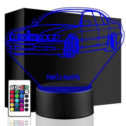 LAMPKA NOCNA SAMOCHÓD BMW E36 3D LED KOLORY + PILOT z własną dedykacją