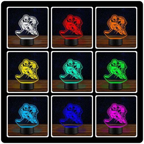 LAMPKA NOCNA HOKEJ KIJ KRĄŻEK KASK 3D LED KOLORY + PILOT