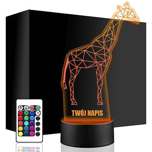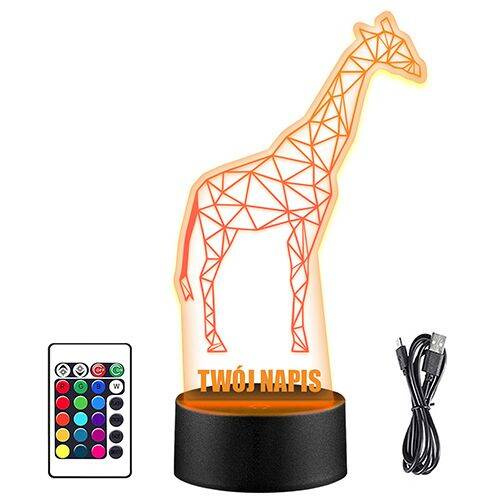 LAMPKA NOCNA ŻYRAFA ZOO ZWIERZĄTKO 3D LED KOLORY + PILOT z własną dedykacją