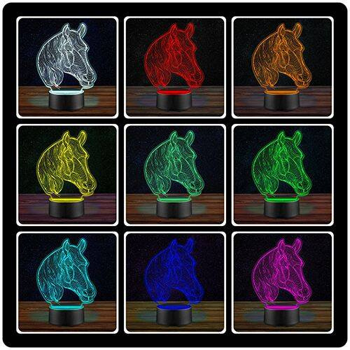 LAMPKA NOCNA LED GŁOWA KONIA ZWIERZĘ 3D + PILOT prezent URODZINY statuetka