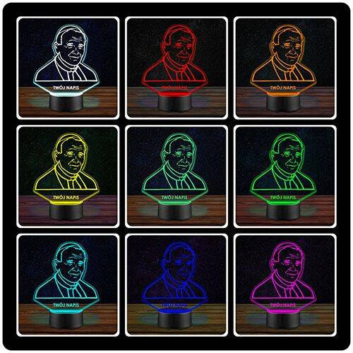 LAMPKA NOCNA LED KAROL WOJTYŁA PAPIEŻ 3D + PILOT prezent URODZINY statuetka