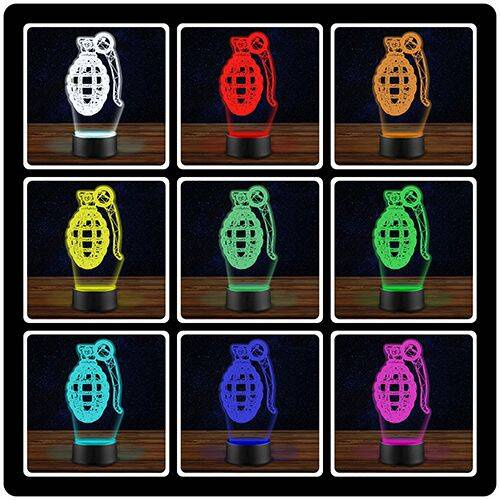 LAMPKA NOCNA LED GRANAT BROŃ POCISK 3D + PILOT prezent URODZINY statuetka
