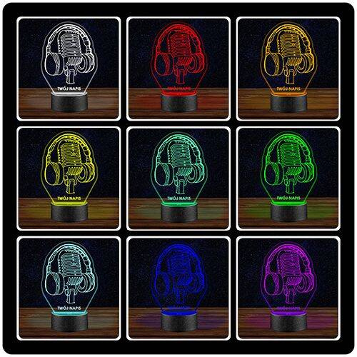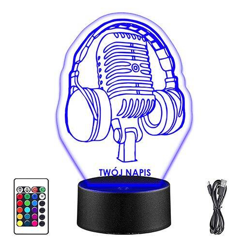 LAMPKA NOCNA LED SŁUCHAWKI MIKROFON 3D + PILOT prezent URODZINY statuetka