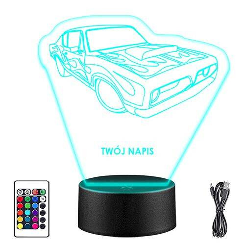 LAMPKA NOCNA LED DODGE AUTO AUTKO 3D + PILOT prezent URODZINY statuetka