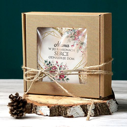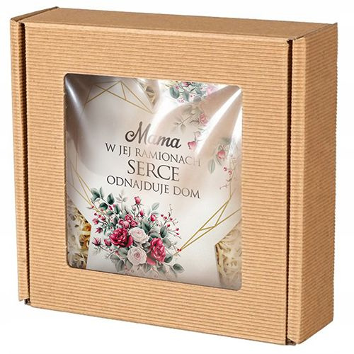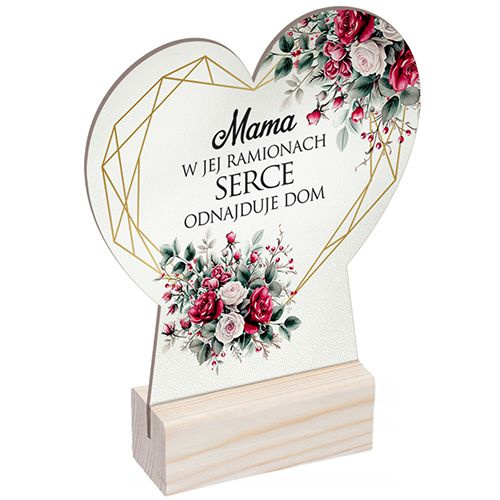 - statuetka w kształcie serca z napisem: "Mama w jej ramionach serce odnajduje dom"