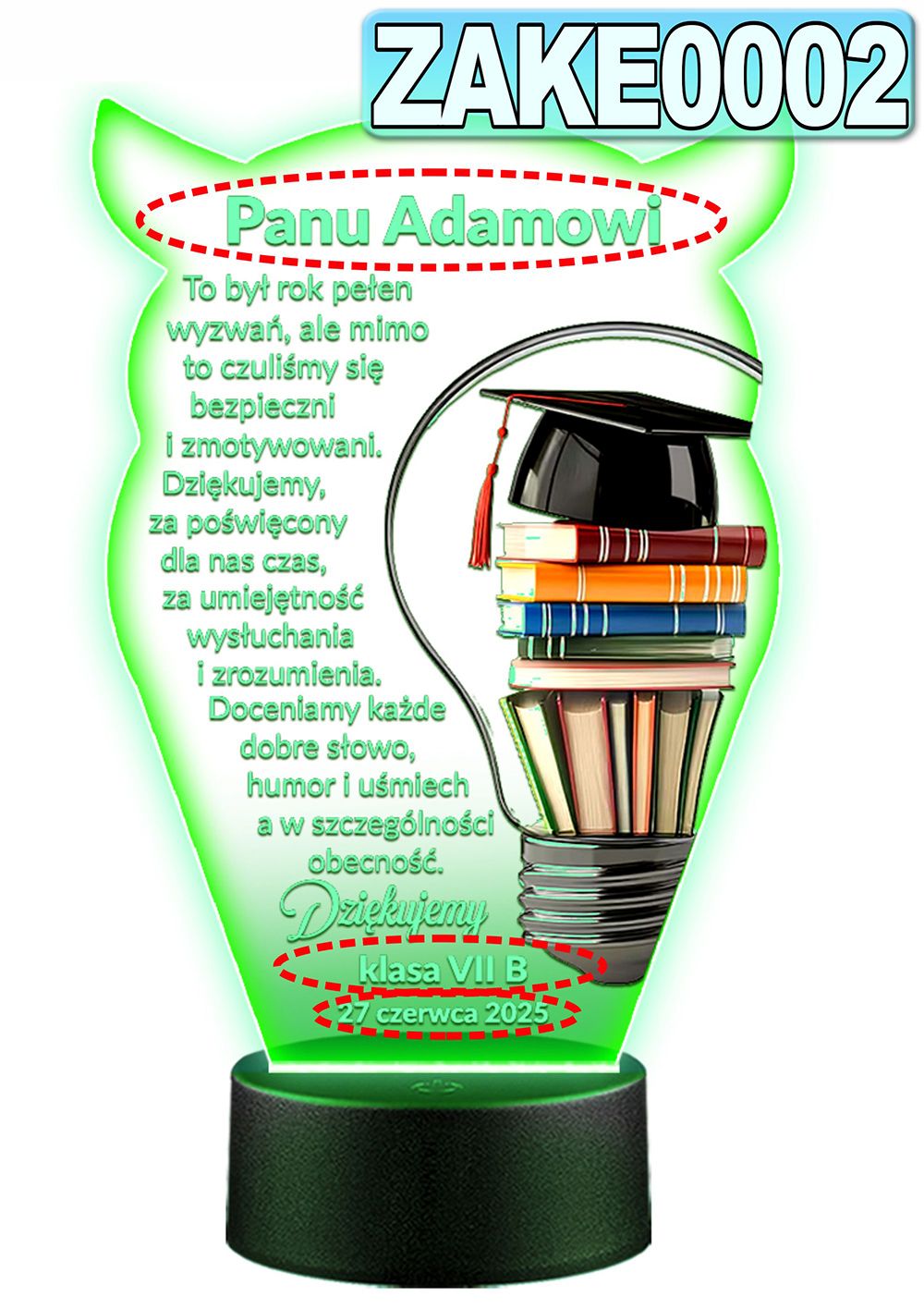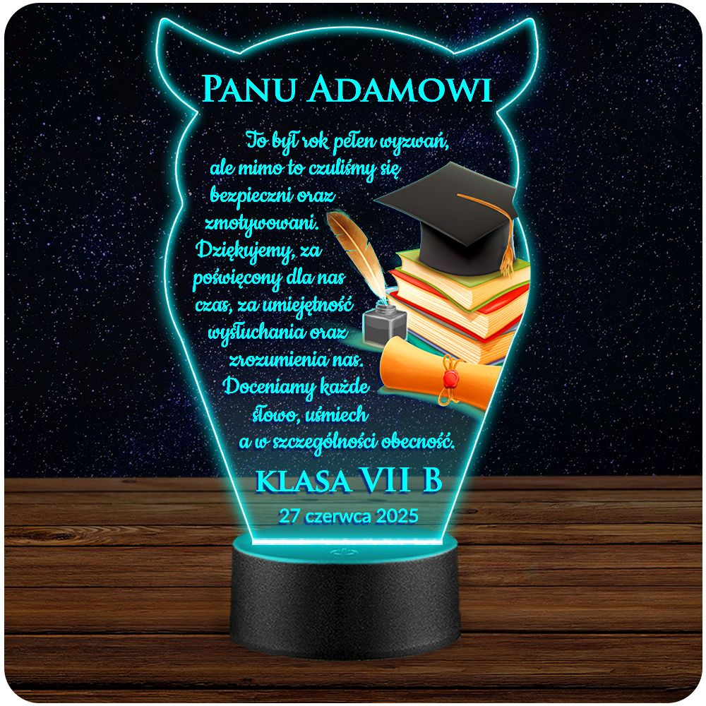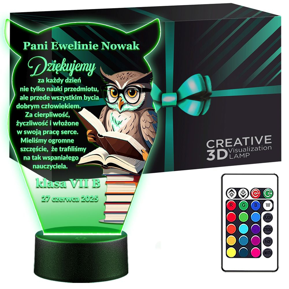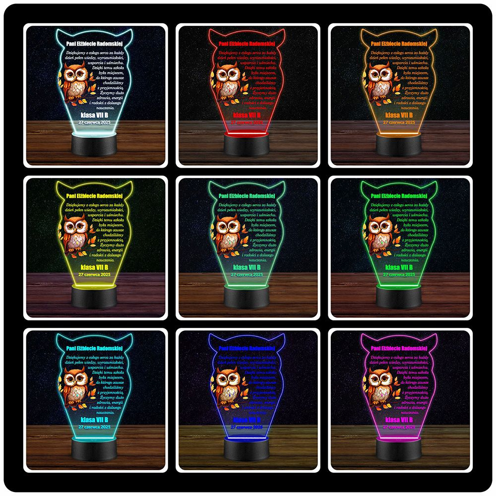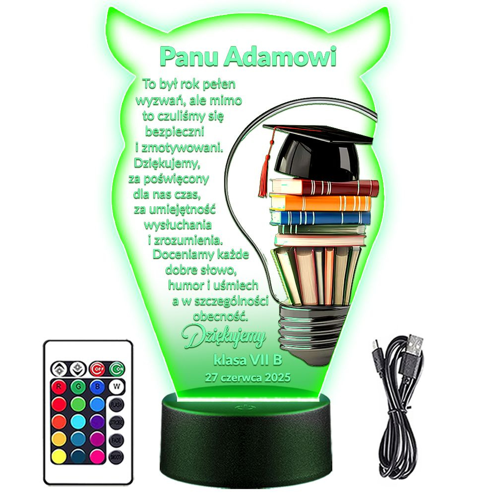 LAMPKA NOCNA 3D LED KOLORY + PILOT z własną dedykacją