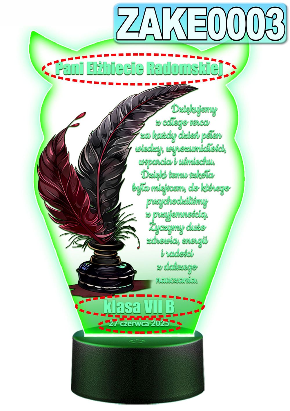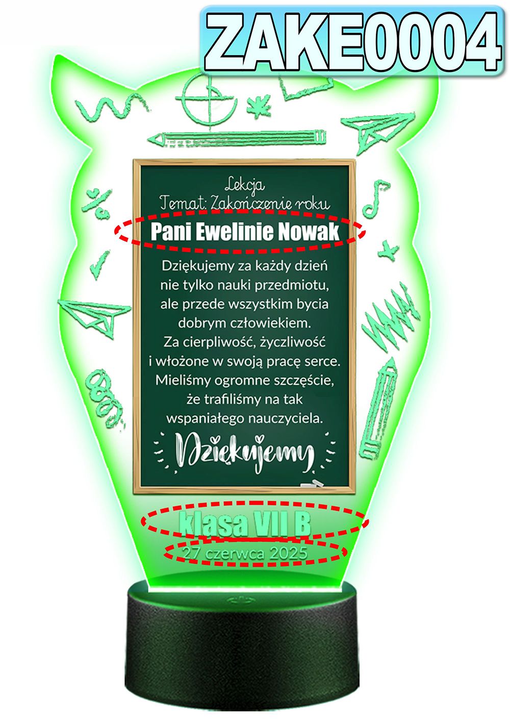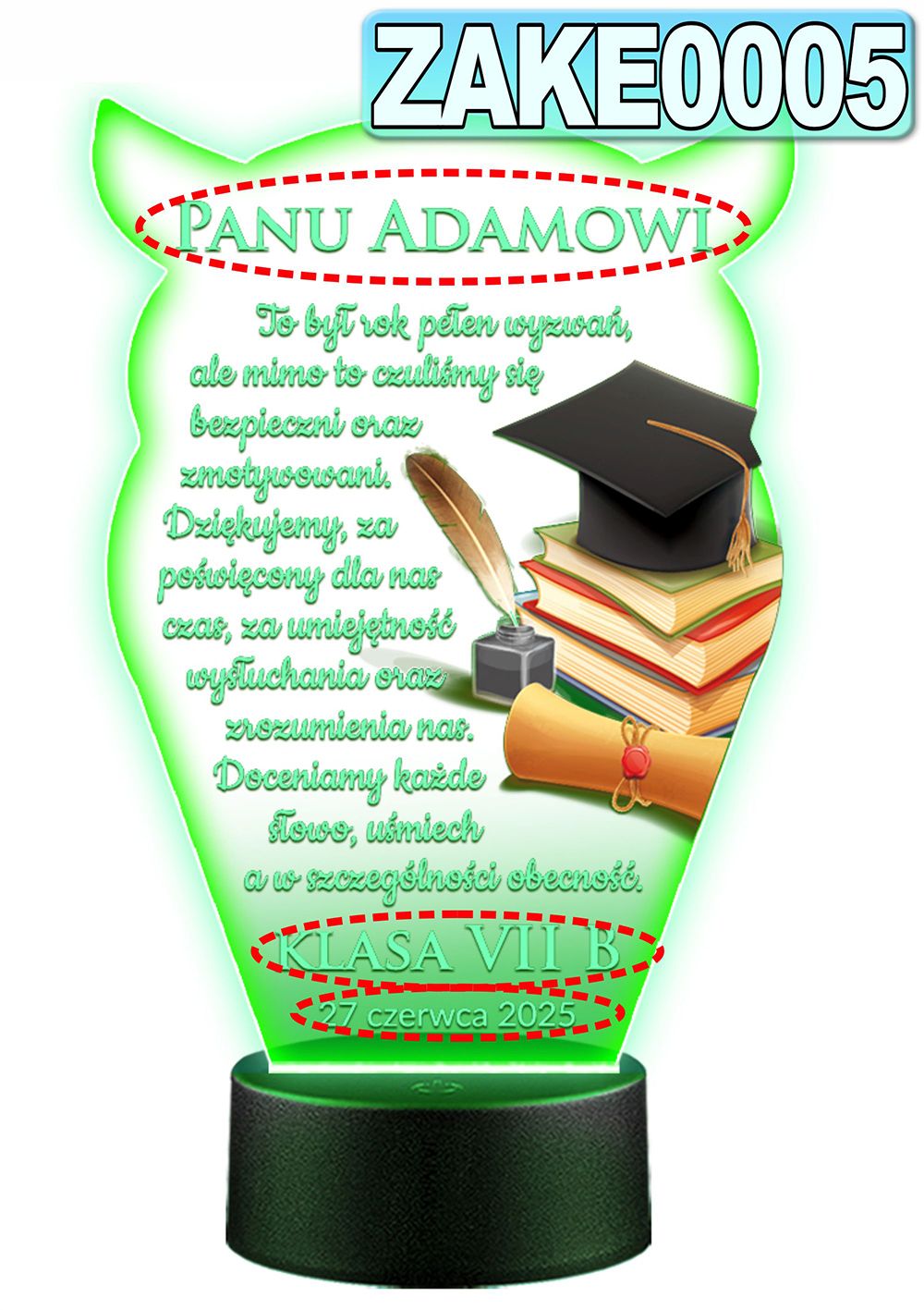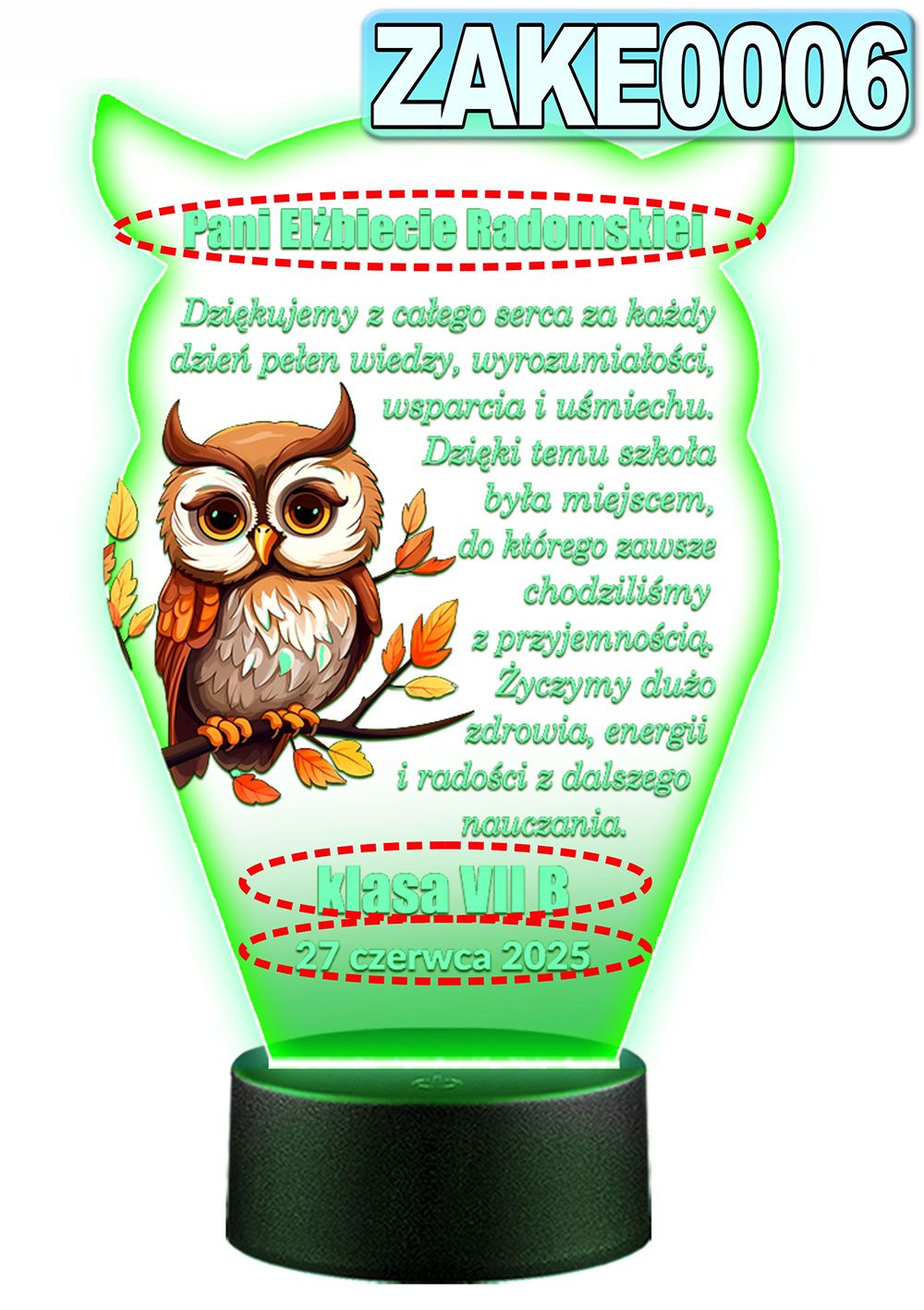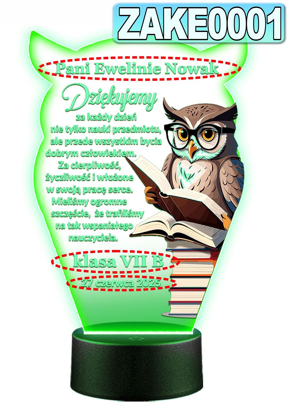 LAMPKA NOCNA 3D LED KOLORY + PILOT z własną dedykacją