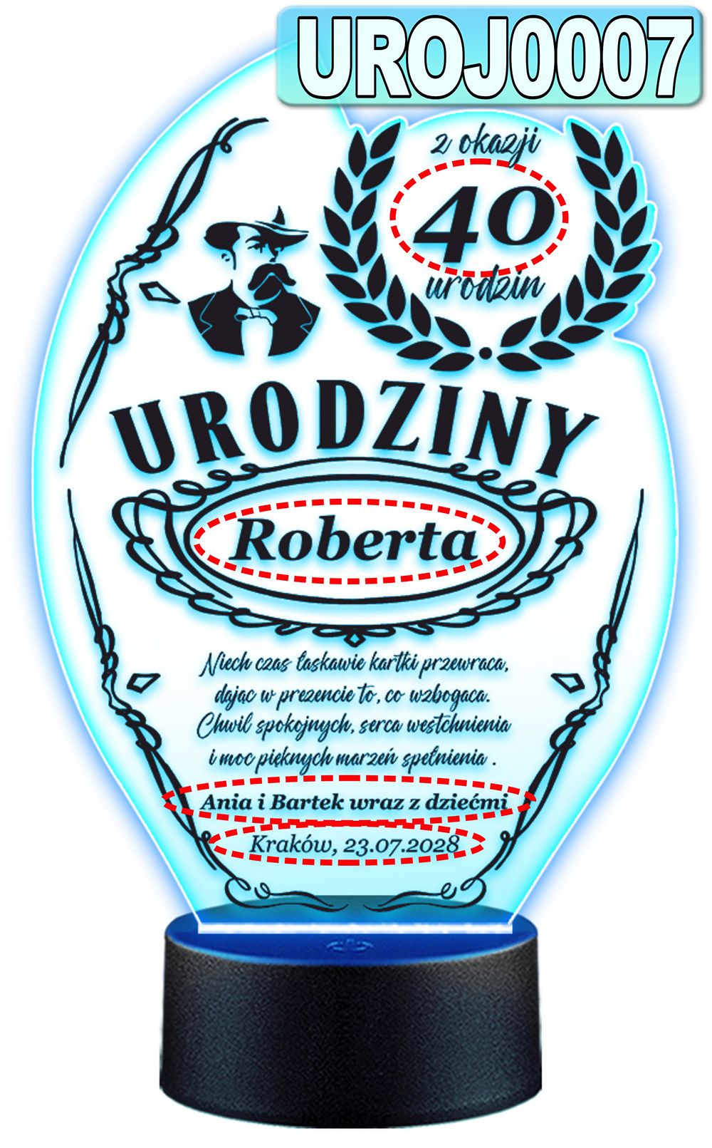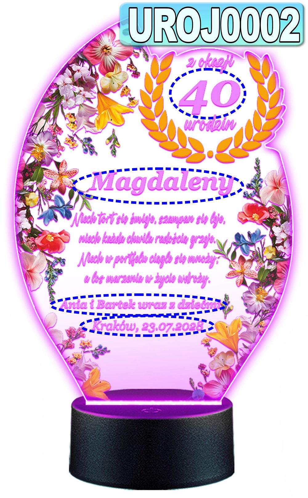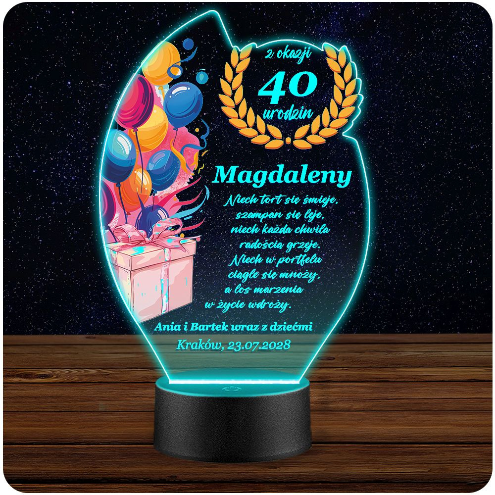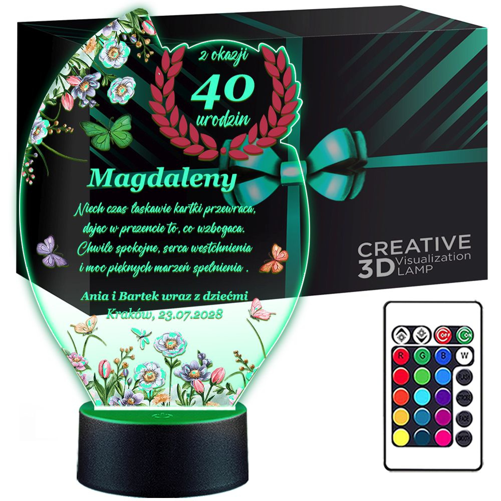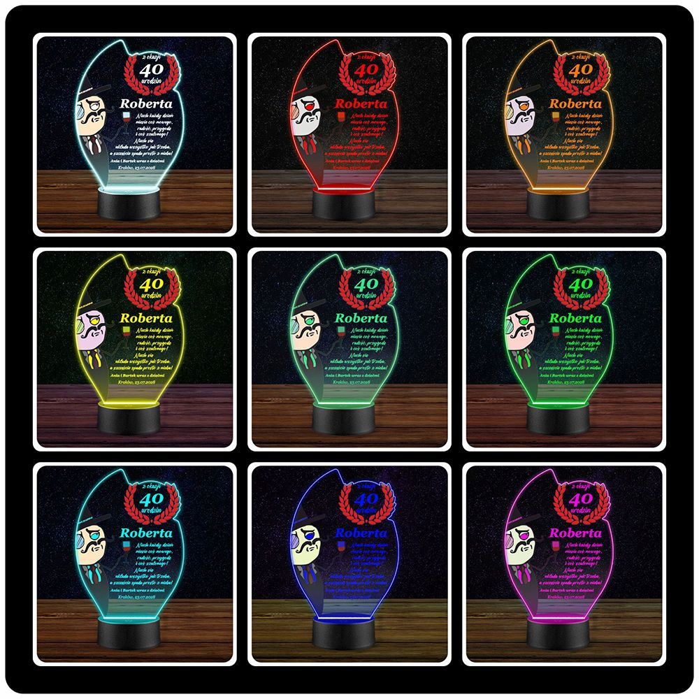 LAMPKA NOCNA 3D LED KOLORY + PILOT z własną dedykacją