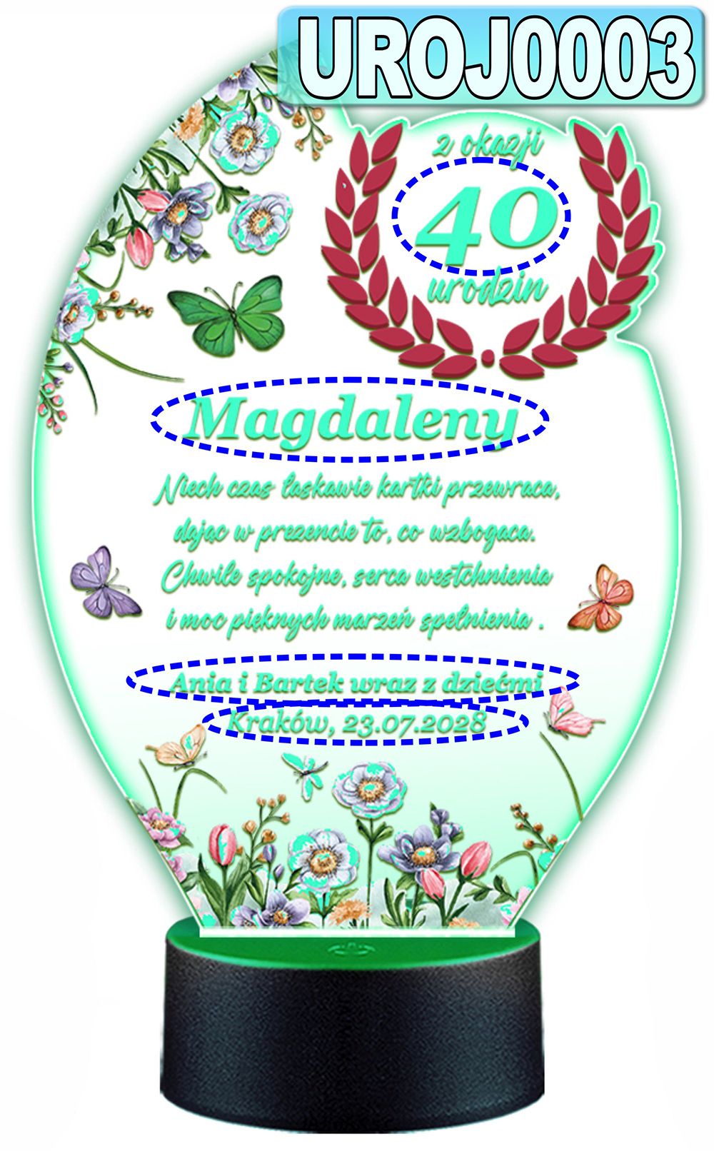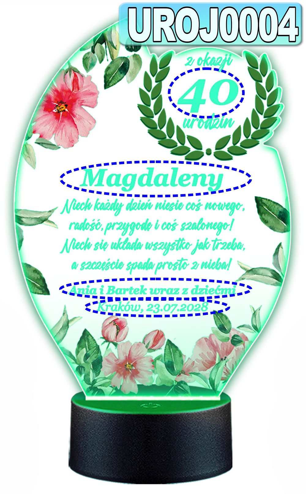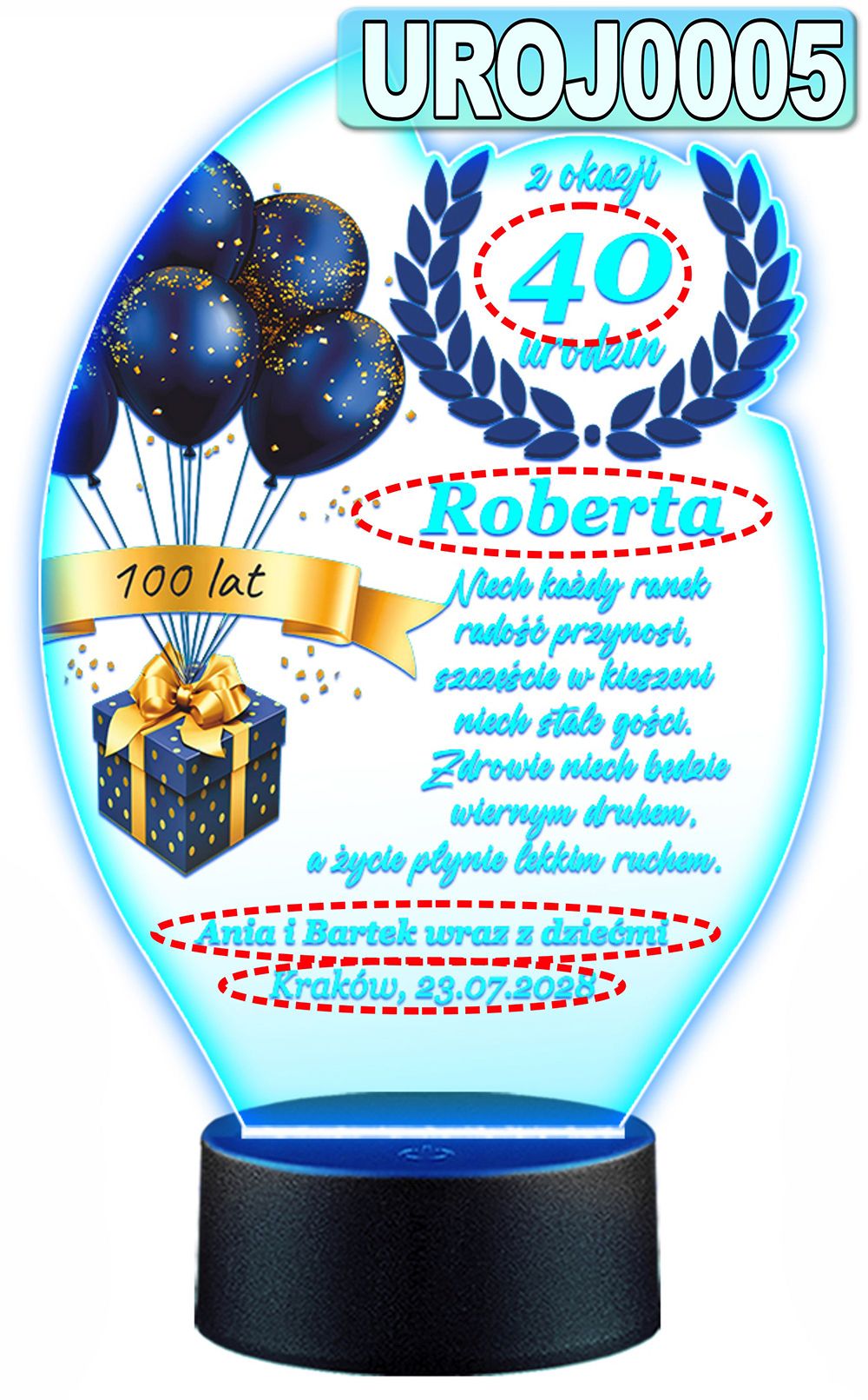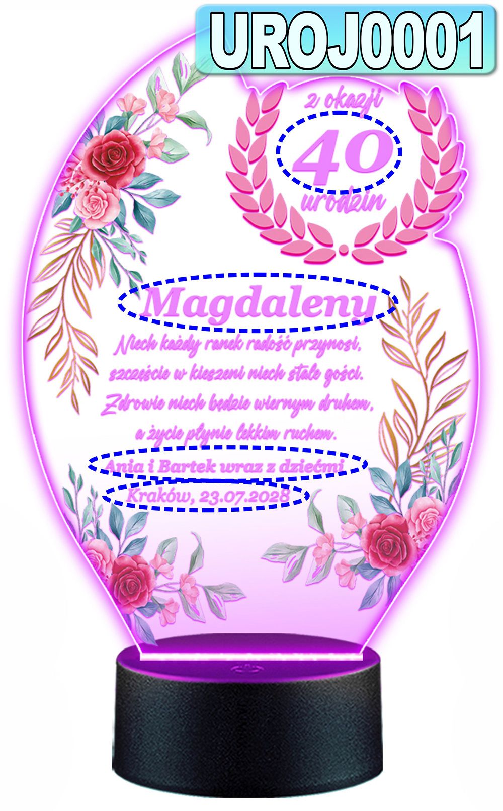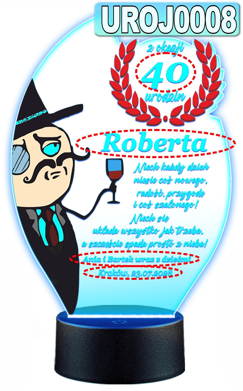 LAMPKA NOCNA 3D LED KOLORY + PILOT z własną dedykacją