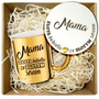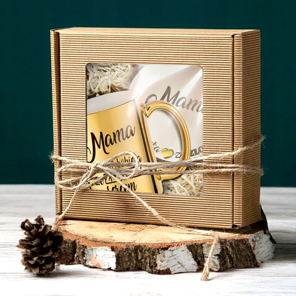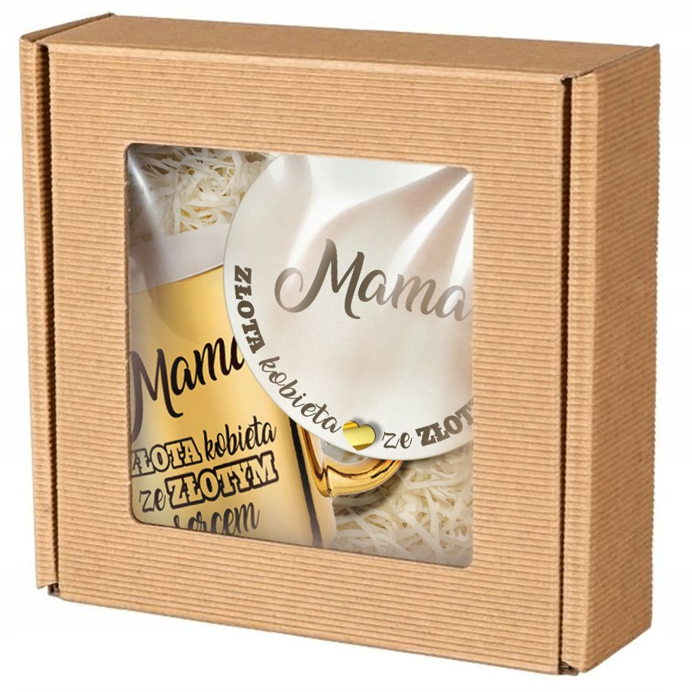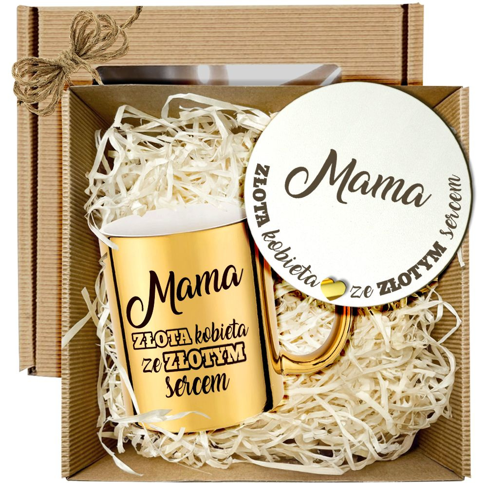 Zestaw prezentowy DLA MAMY ZŁOTY KUBEK Z PODSTAWKĄ Z OZDOBNYM OPAKOWANIEM I SZNURKIEM JUTOWYM