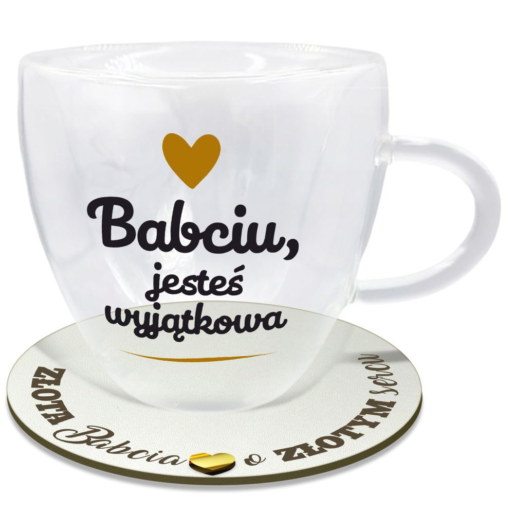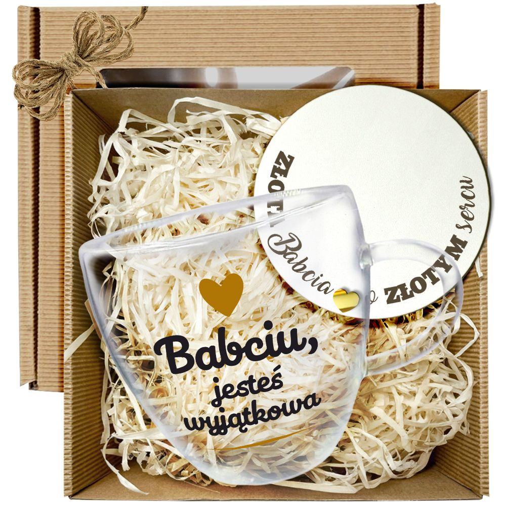 ZESTAW PREZENTOWY SZKLANKA TERMICZA SERCE + PODKŁADKA Prezent na Dzień Babci