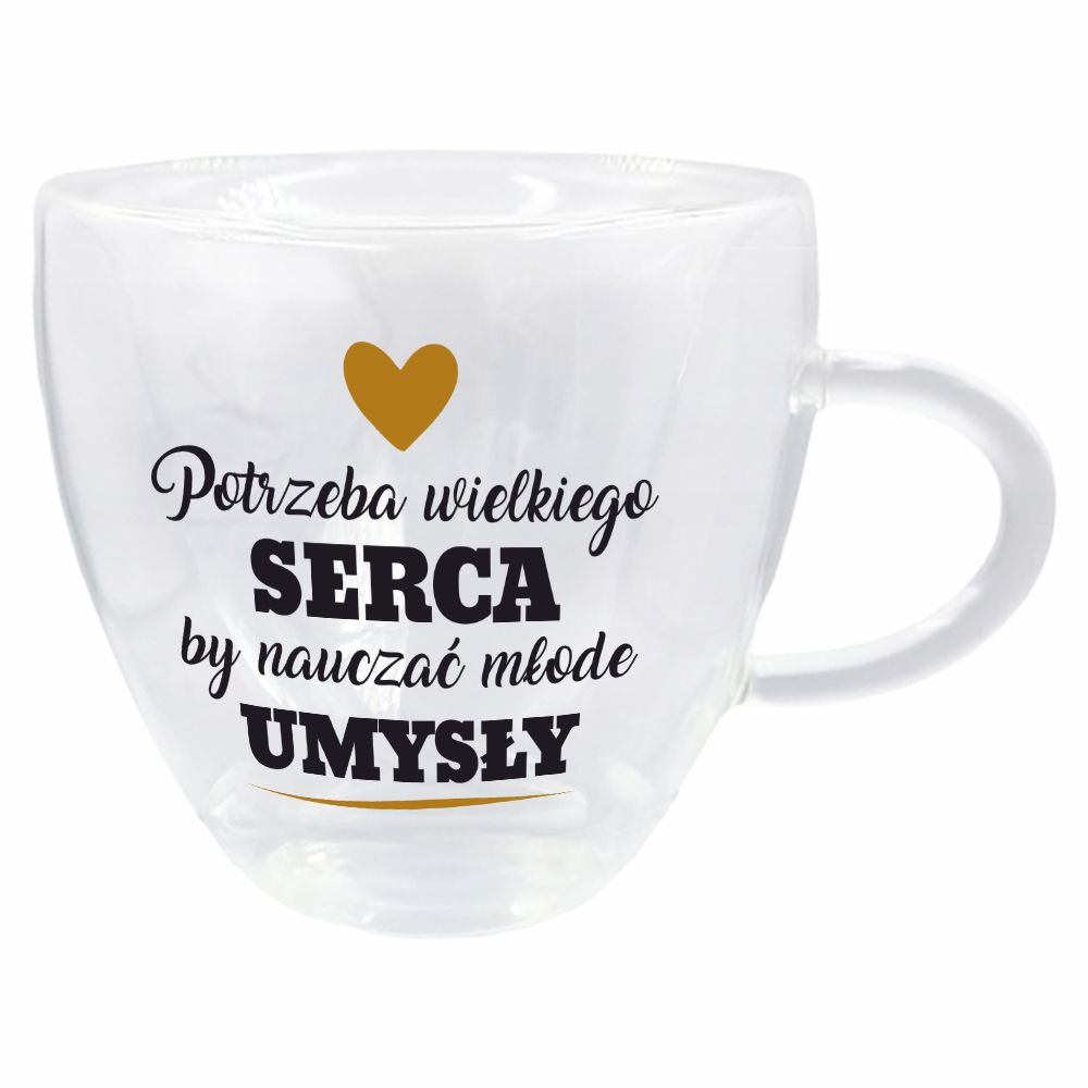 • Napis „Potrzeba wielkiego SERCA by nauczać młode umysły” – trwały kolorowy nadruk, który mówi wszystko bez słów.