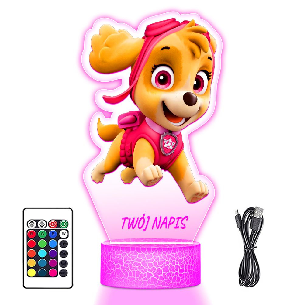 Lampka Nocna LED 3D Bajka Psi Patrol Skye Piesek na Dzień Dziecka Urodziny