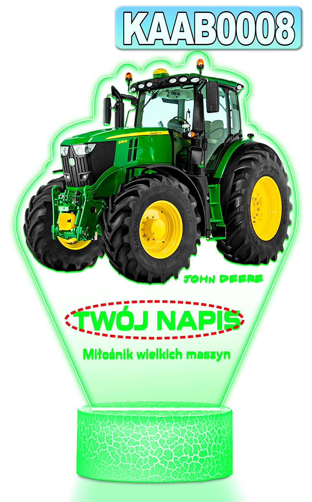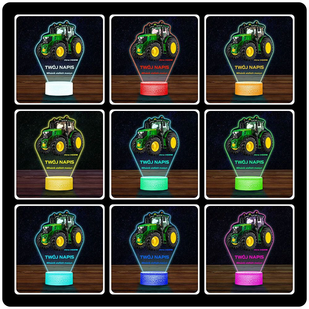 • Lampka Nocna 3D LED z Imieniem Traktor Ciągnik John Deere Chłopca Urodziny