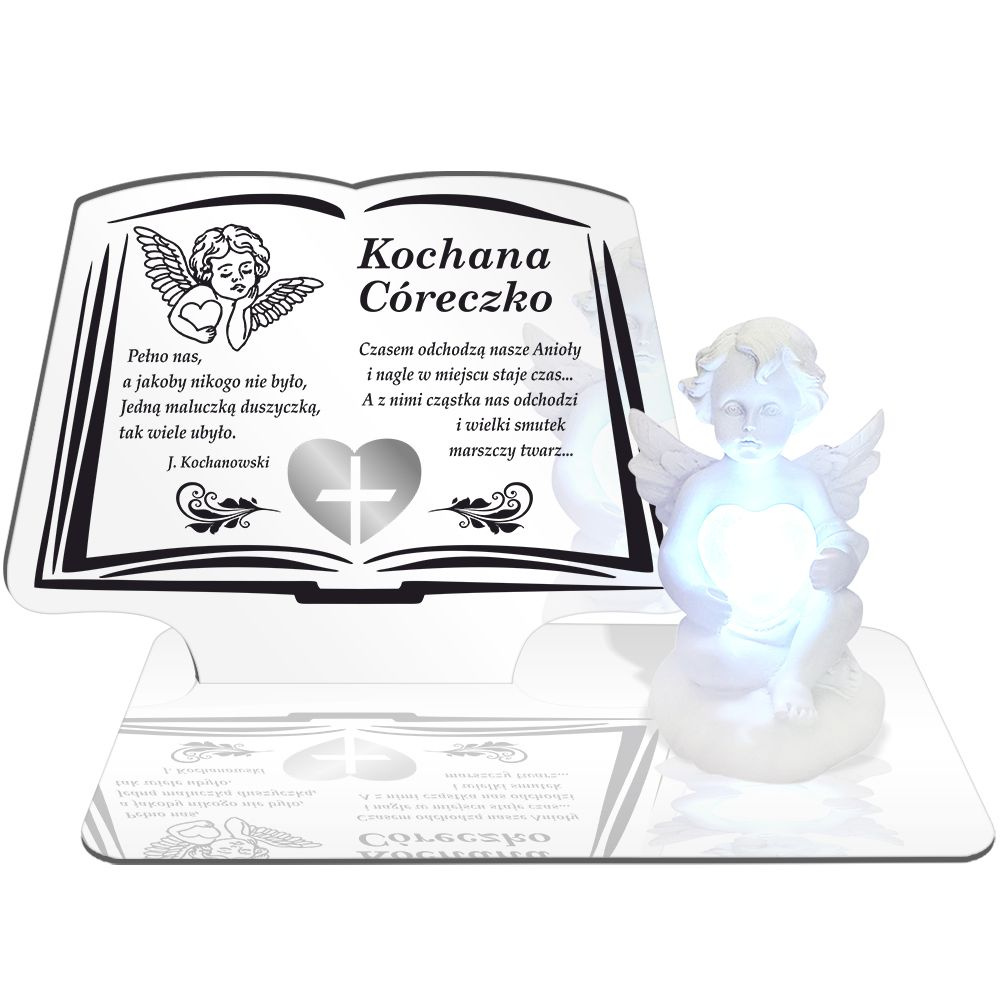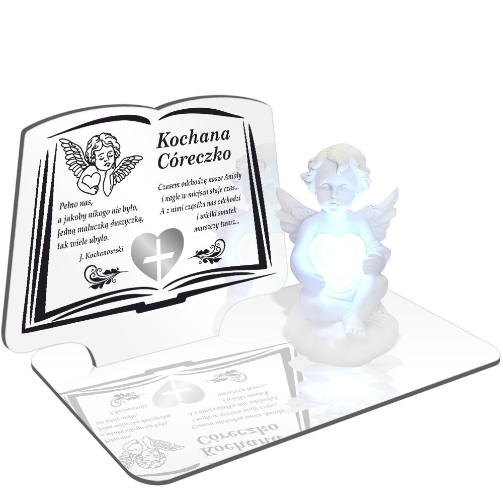ZNICZ LED GRÓB Dziecka Córki Syna ANIOŁEK PODSTAWKA NA CMENTARZ BIAŁY ANIOŁ