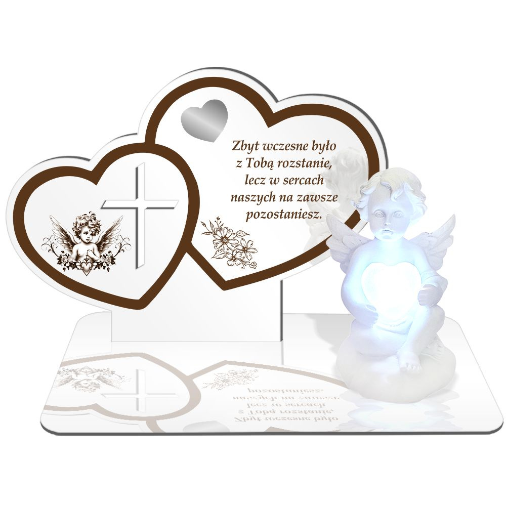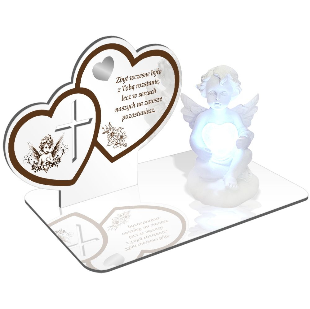• ZNICZ LED GRÓB Dziecka Córki Syna ANIOŁEK PODSTAWKA NA CMENTARZ BIAŁY ANIOŁ