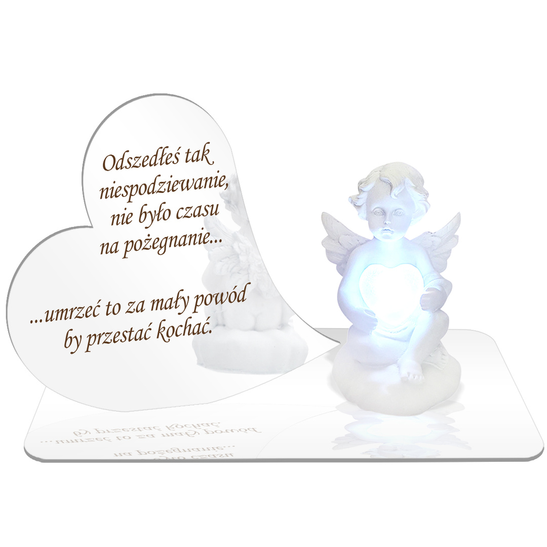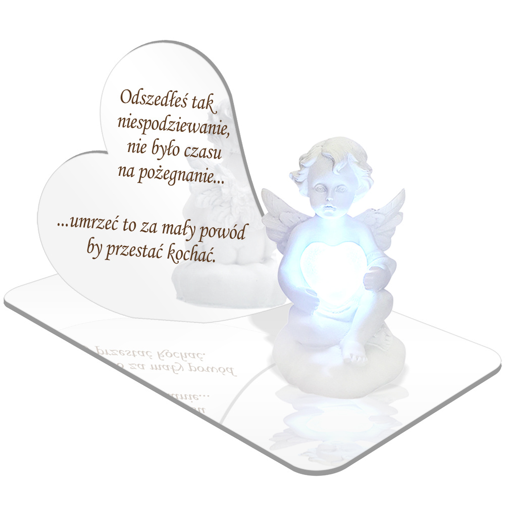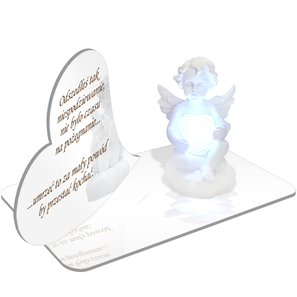 BIAŁY ZNICZ LED PREMIUM - znicz ANIOŁEK ŚWIECĄCY Z SERCEM LED