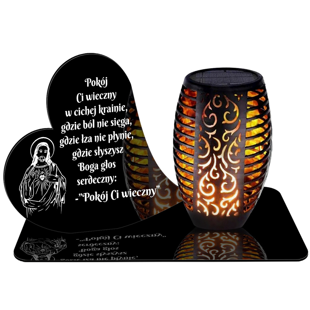 ZNICZ SOLARNY LED WIECZNY PODSTAWKA NA CMENTARZ GRÓB Serce EFEKT PŁOMIENIA