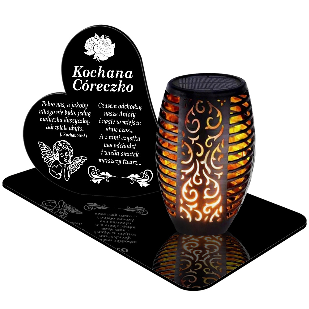 ZNICZ SOLARNY LED WIECZNY PODSTAWKA NA CMENTARZ GRÓB Serce EFEKT PŁOMIENIA