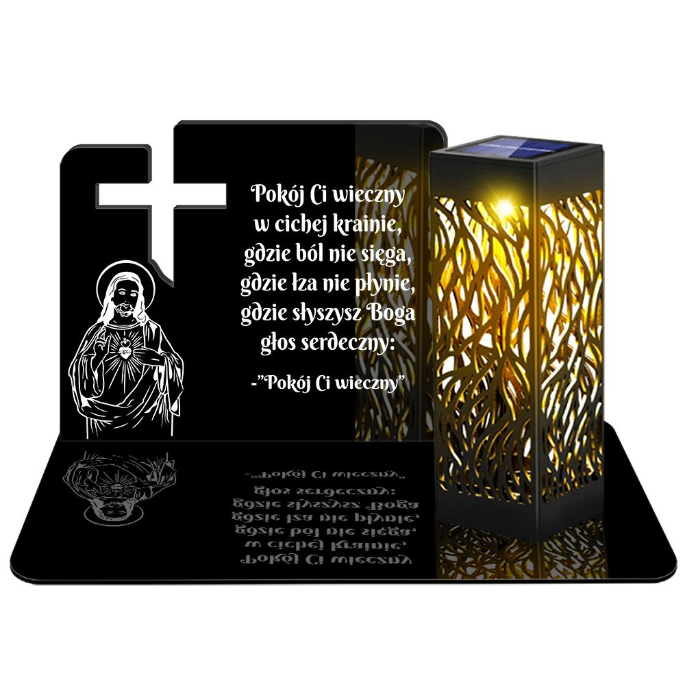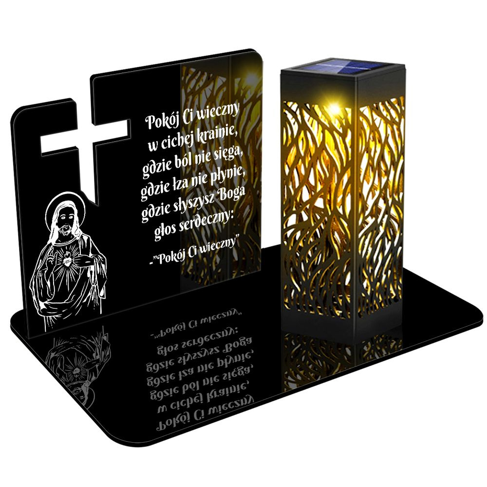 • ZNICZ SOLARNY LED WIECZNY PODSTAWKA NA CMENTARZ GRÓB lampka Krzyż 3D