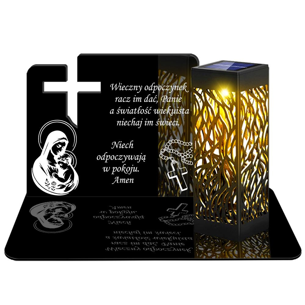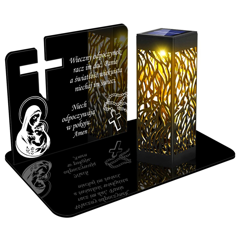 • ZNICZ SOLARNY LED WIECZNY PODSTAWKA NA CMENTARZ GRÓB lampka Krzyż 3D