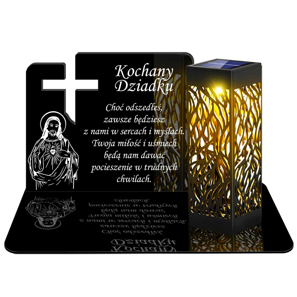 ZNICZ SOLARNY LED WIECZNY PODSTAWKA NA CMENTARZ GRÓB lampka Krzyż 3D DLA DZIADKA