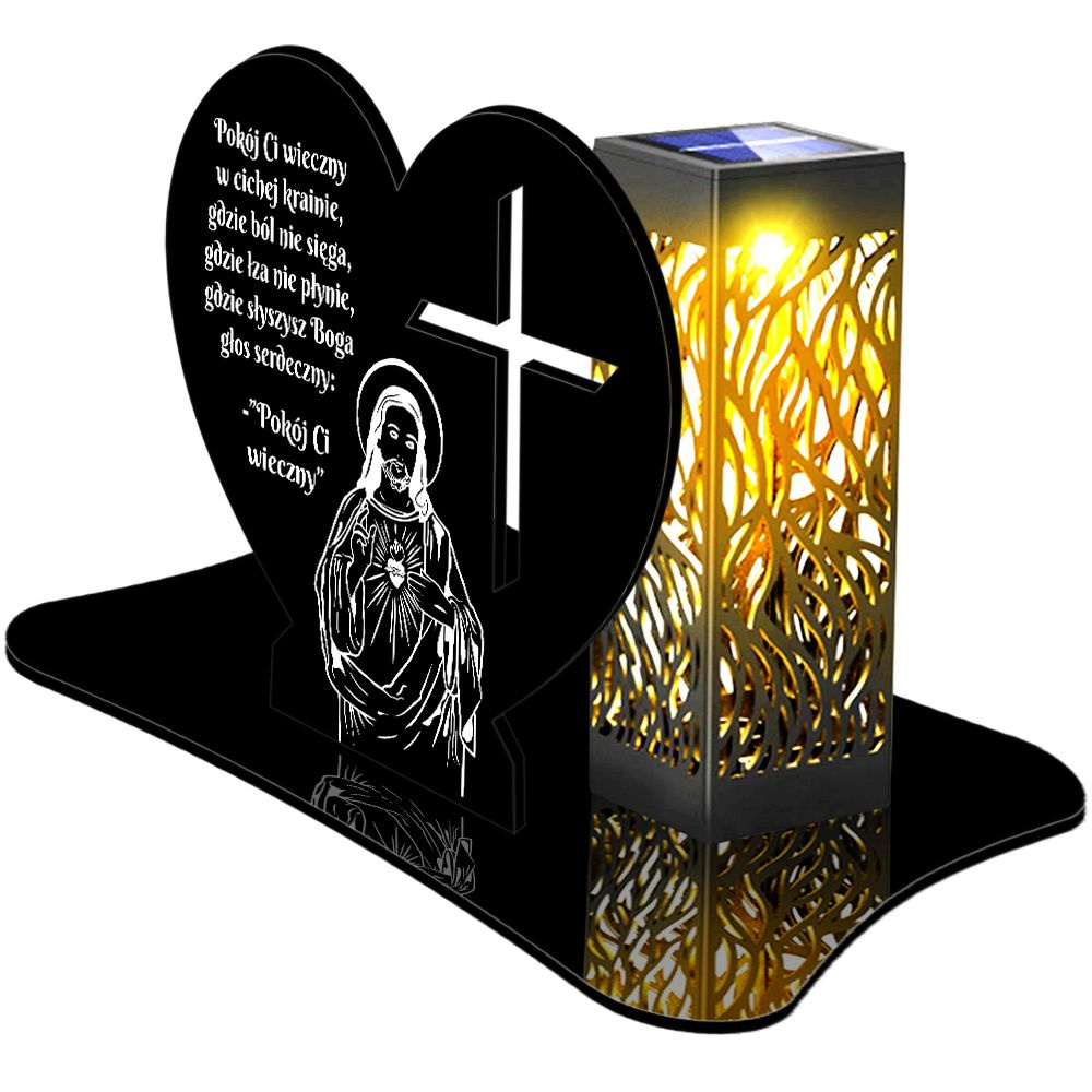 • ZNICZ SOLARNY LED WIECZNY PODSTAWKA NA CMENTARZ GRÓB lampka Serce 3D