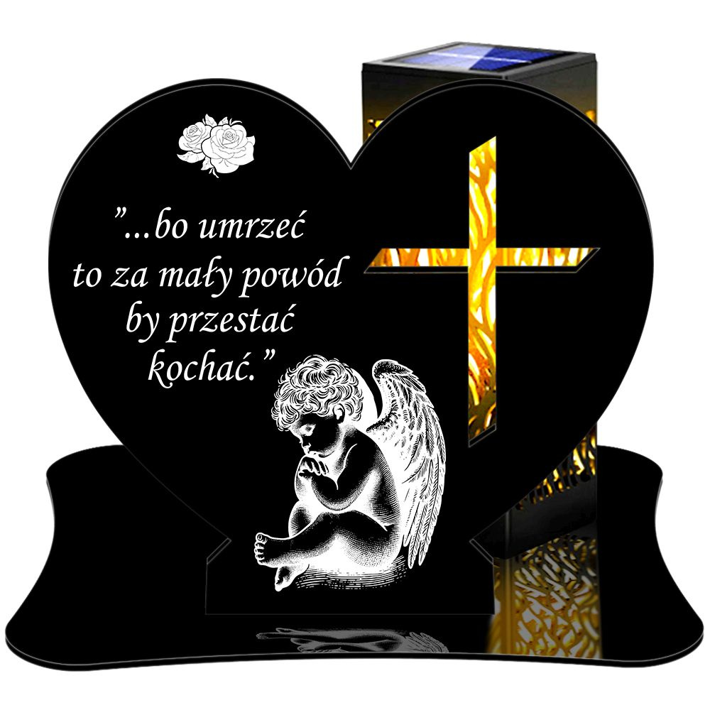 • ZNICZ SOLARNY LED WIECZNY PODSTAWKA NA CMENTARZ GRÓB lampka Serce 3D