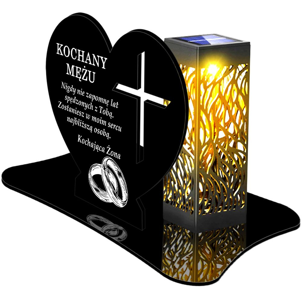 ZNICZ SOLARNY LED WIECZNY PODSTAWKA NA CMENTARZ GRÓB lampka Serce 3D DLA MĘŻA