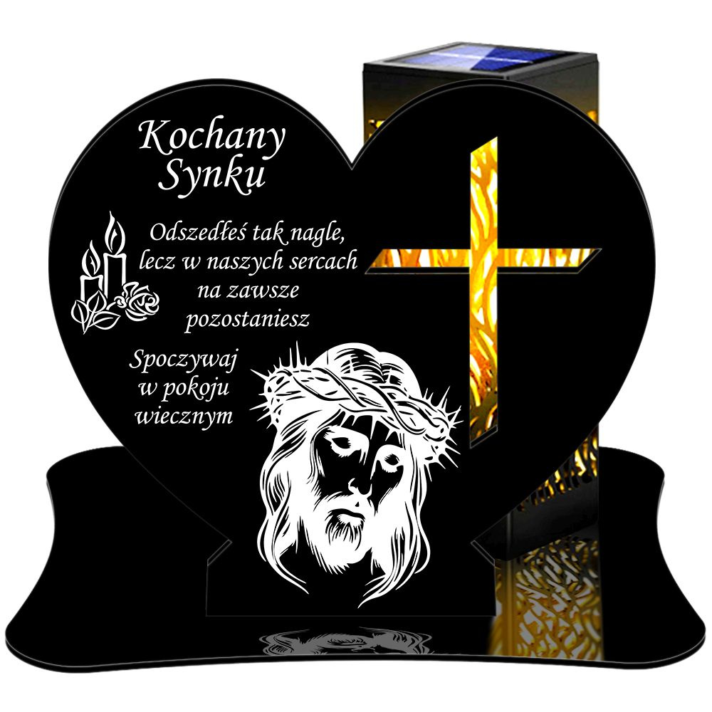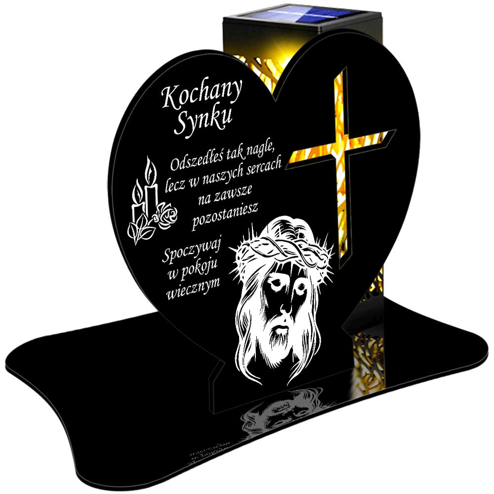 • ZNICZ SOLARNY LED WIECZNY PODSTAWKA NA CMENTARZ GRÓB lampka Serce 3D DLA SYNA