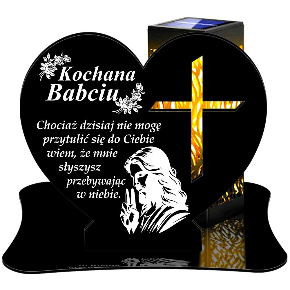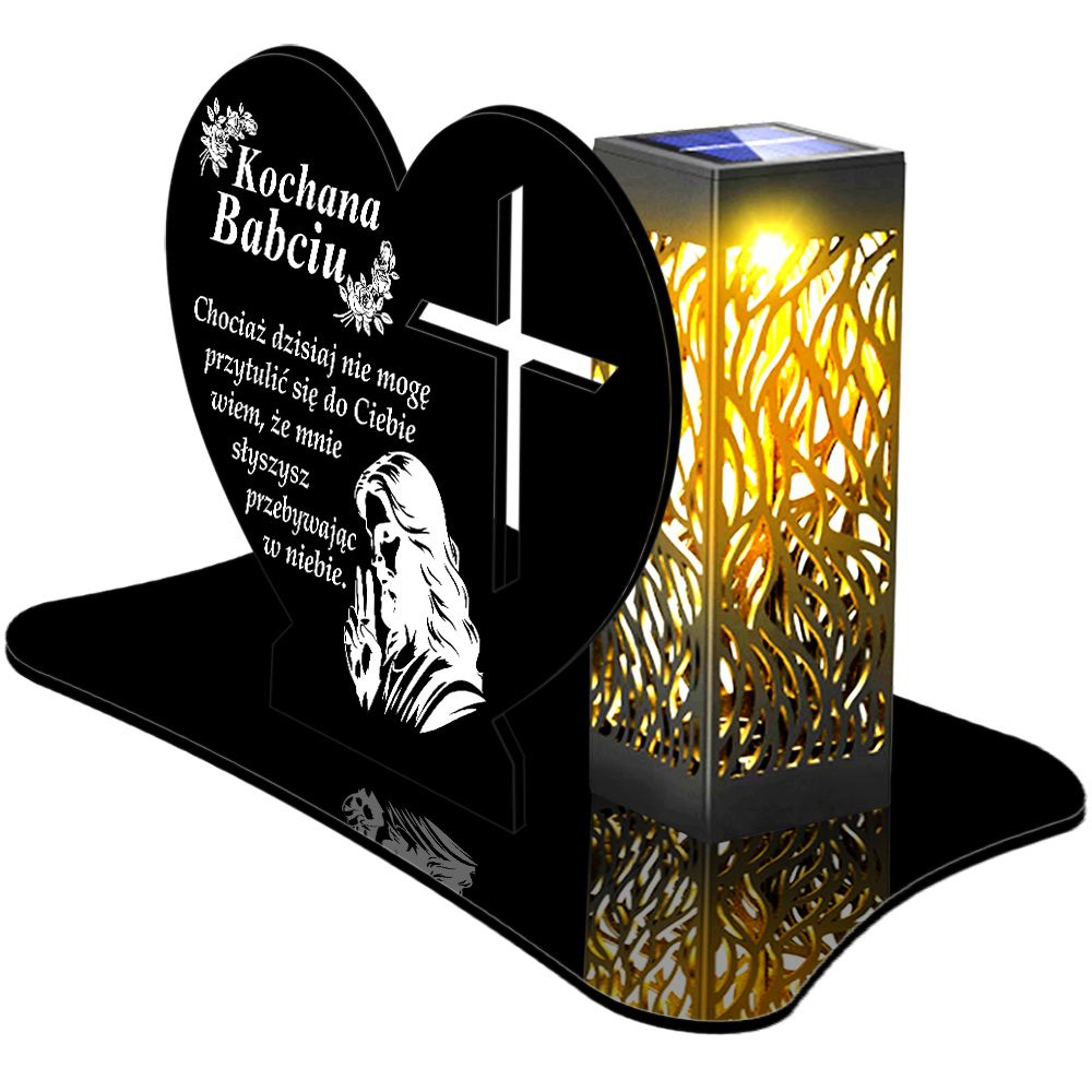 ZNICZ SOLARNY LED WIECZNY PODSTAWKA NA CMENTARZ GRÓB lampka Serce 3D DLA BABCI