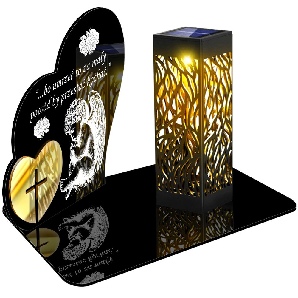 ZNICZ SOLARNY LED PREMIUM XL z złotym zdobieniem - wieczny znicz z wbudowanym czujnikiem zmierzchu
