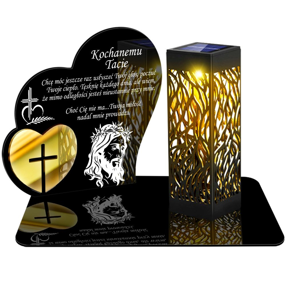 ZNICZ SOLARNY LED WIECZNY PODSTAWKA NA CMENTARZ GRÓB lampka Serce 3D DLA TATY