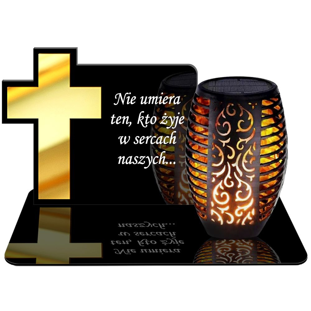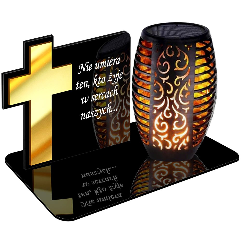 ZNICZ SOLARNY LED WIECZNY PODSTAWKA NA CMENTARZ GRÓB Krzyż EFEKT PŁOMIENIA