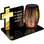 ZNICZ SOLARNY LED PREMIUM XL z złotym zdobieniem - wieczny znicz z wbudowanym czujnikiem zmierzchu i WKŁADEM Z EFEKTEM PŁOMIENIA