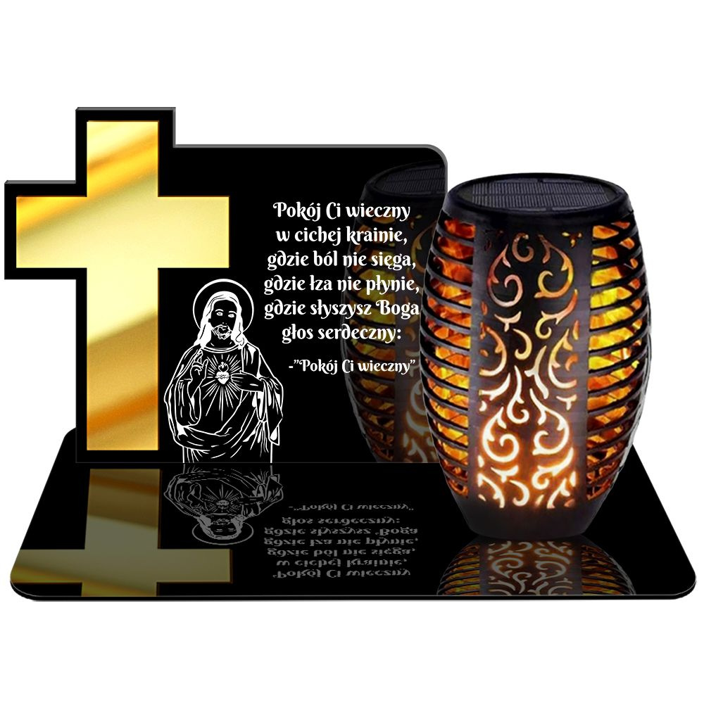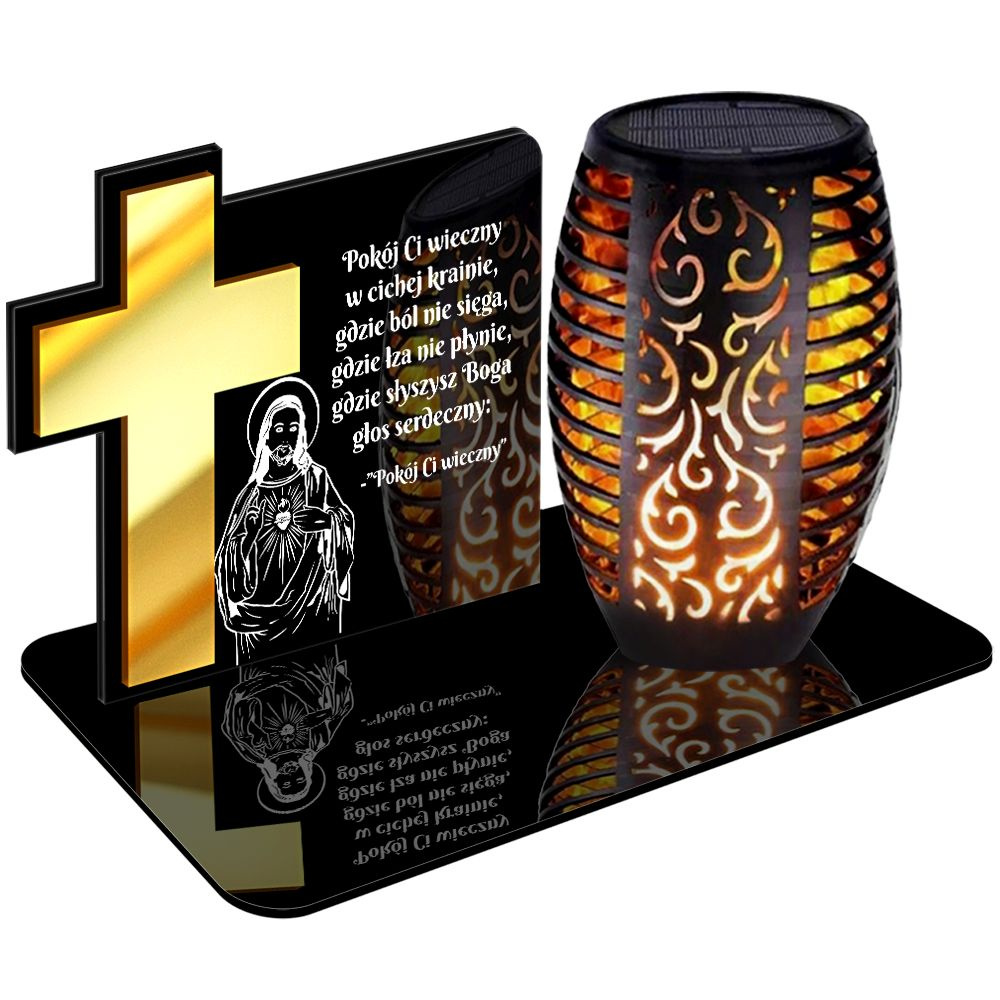 ZNICZ SOLARNY LED WIECZNY PODSTAWKA NA CMENTARZ GRÓB Krzyż EFEKT PŁOMIENIA