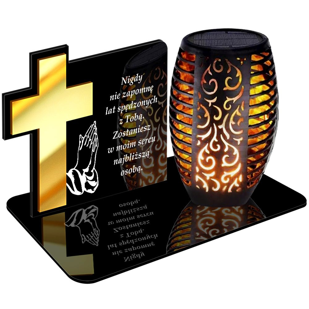 ZNICZ SOLARNY LED PREMIUM XL z złotym zdobieniem - wieczny znicz z wbudowanym czujnikiem zmierzchu i WKŁADEM Z EFEKTEM PŁOMIENIA