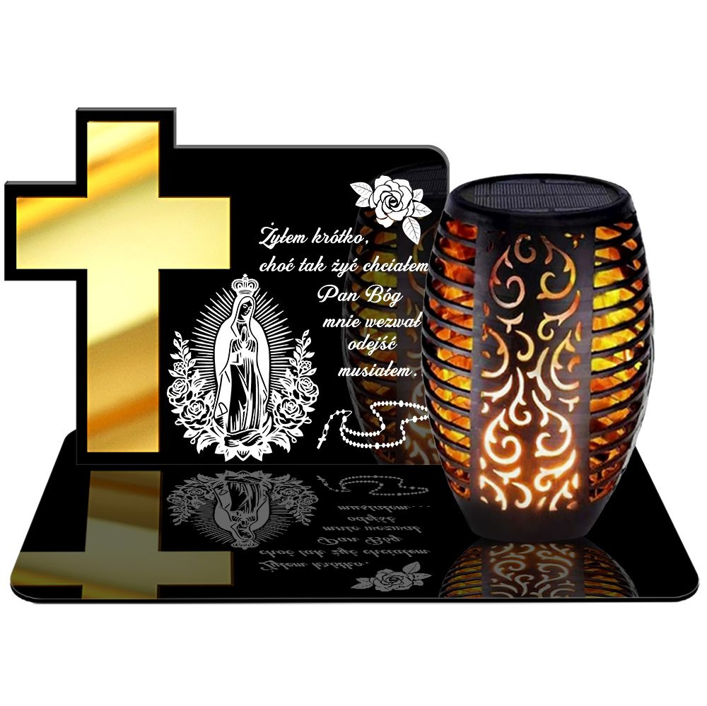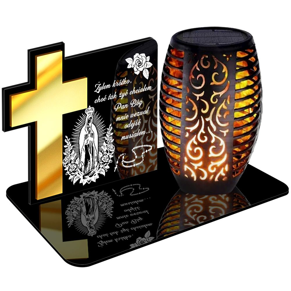 ZNICZ SOLARNY LED WIECZNY PODSTAWKA NA CMENTARZ GRÓB Krzyż EFEKT PŁOMIENIA