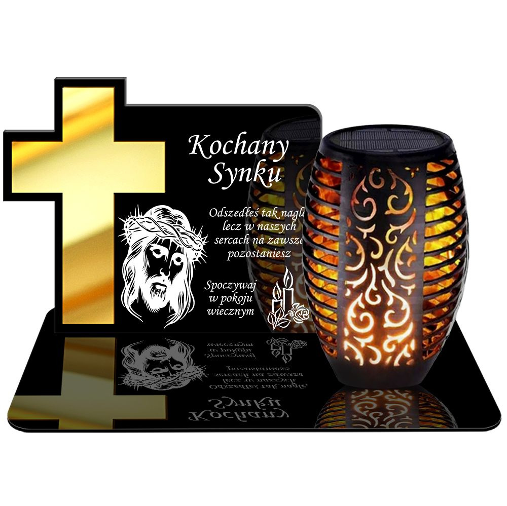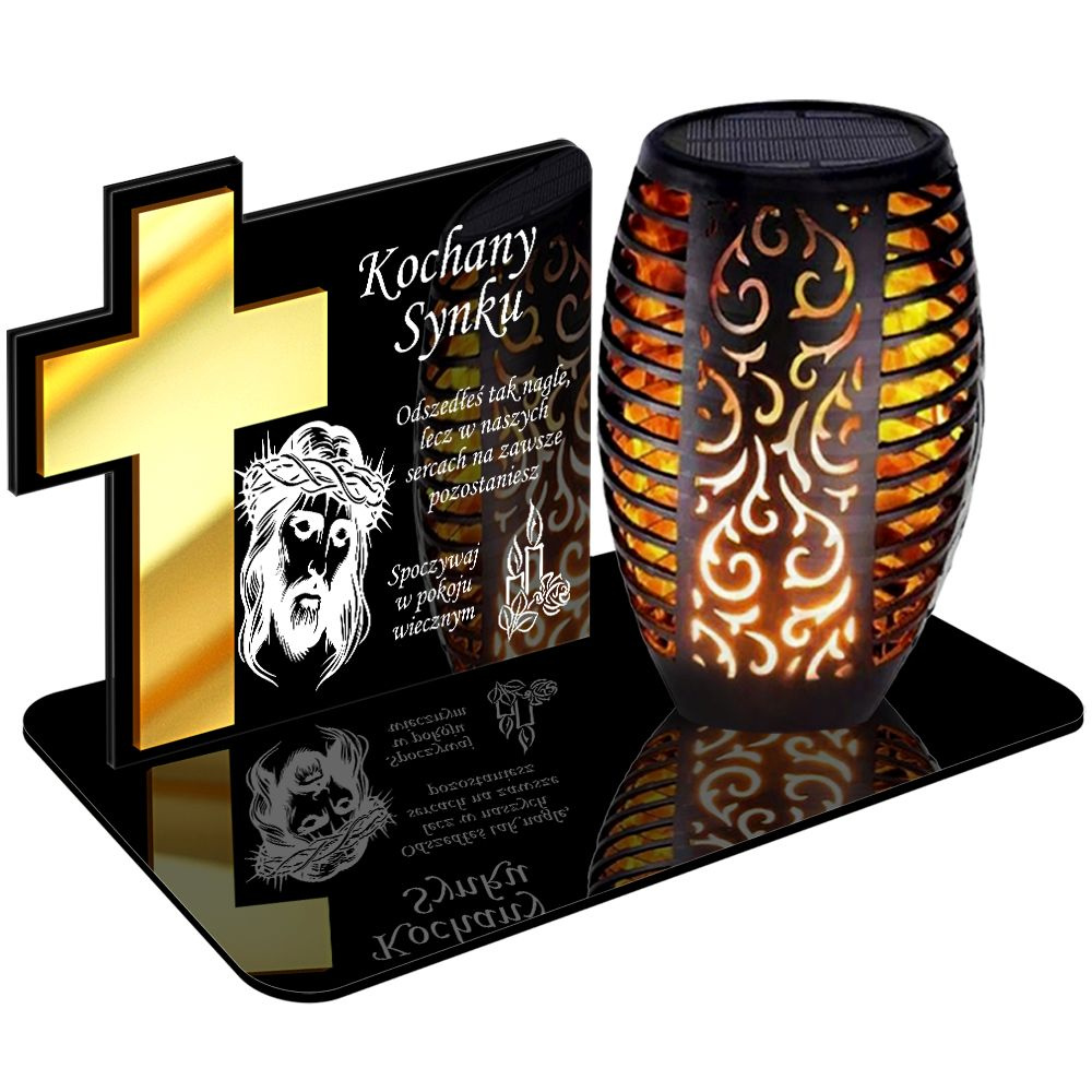 ZNICZ SOLARNY LED WIECZNY PODSTAWKA NA CMENTARZ GRÓB Krzyż EFEKT PŁOMIENIA DLA SYNA