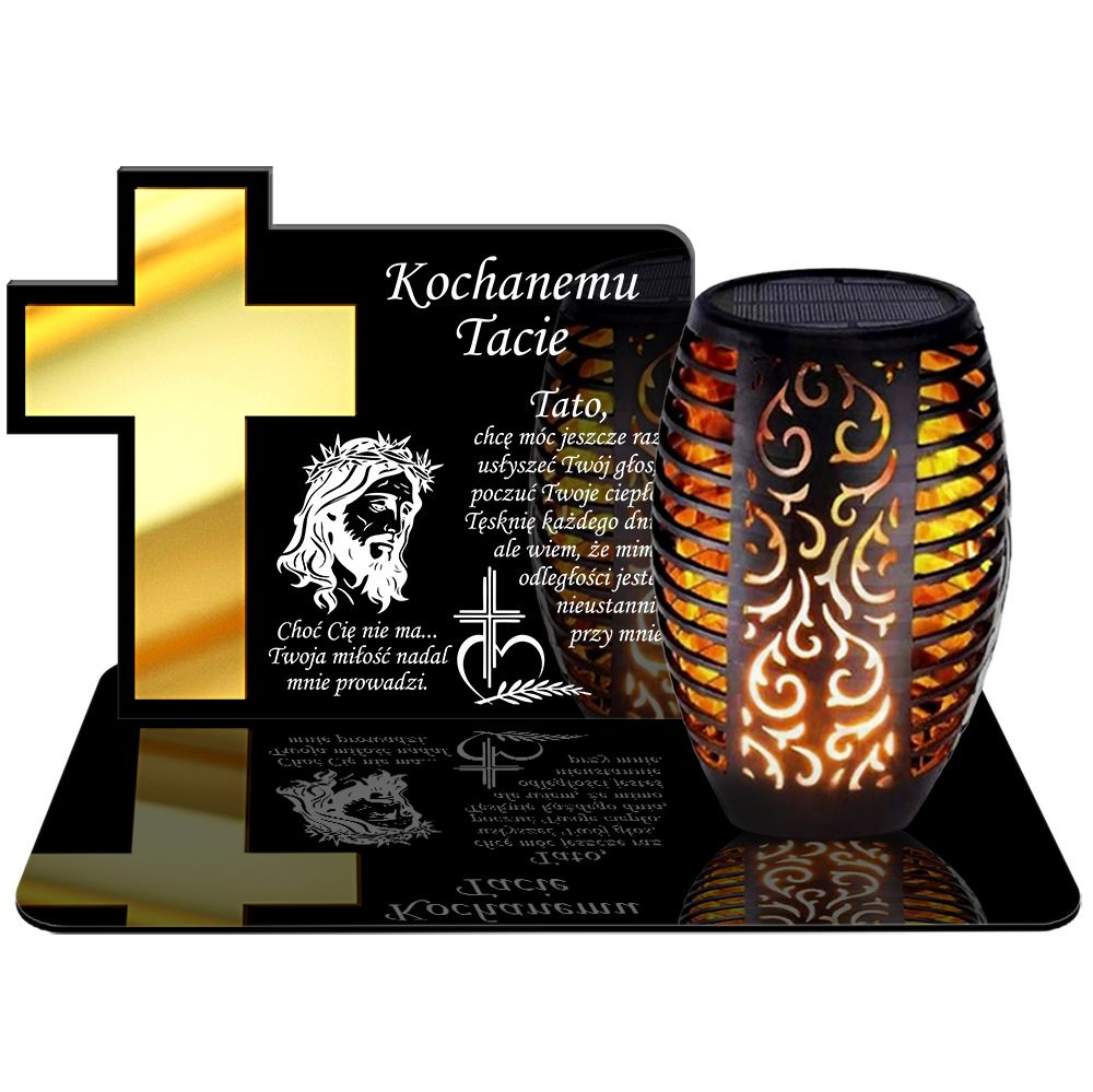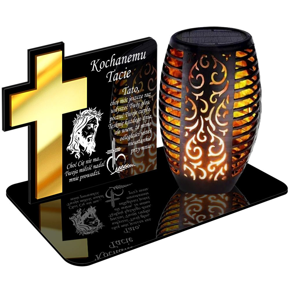 ZNICZ SOLARNY LED WIECZNY PODSTAWKA NA CMENTARZ GRÓB Krzyż EFEKT PŁOMIENIA DLA TATY