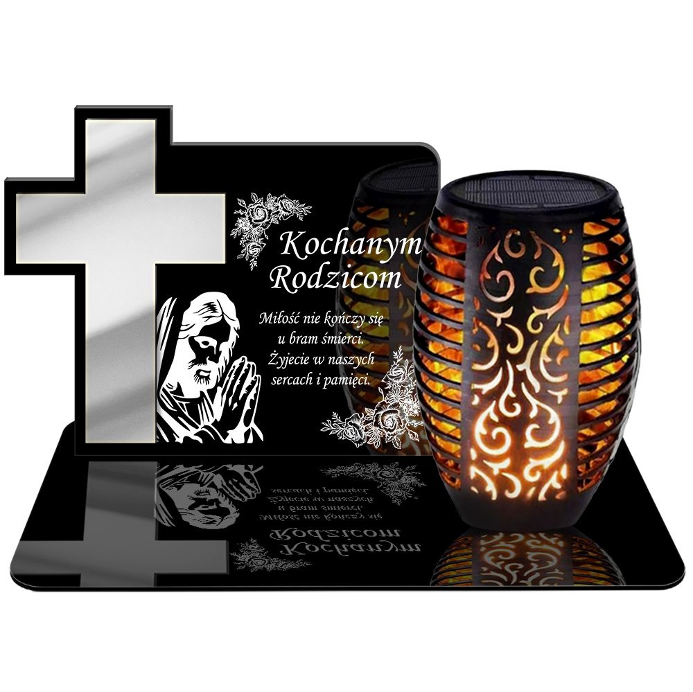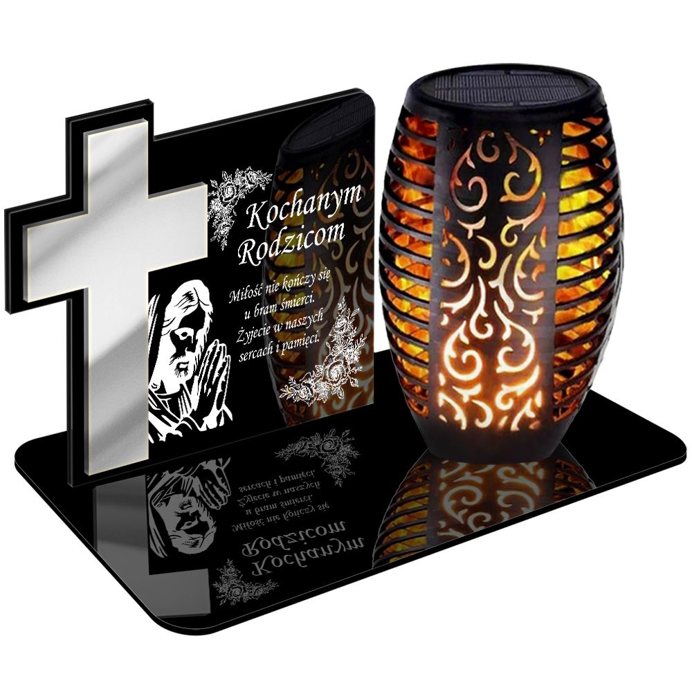 ZNICZ SOLARNY LED WIECZNY PODSTAWKA NA CMENTARZ GRÓB Krzyż EFEKT PŁOMIENIA DLA RODZICÓW