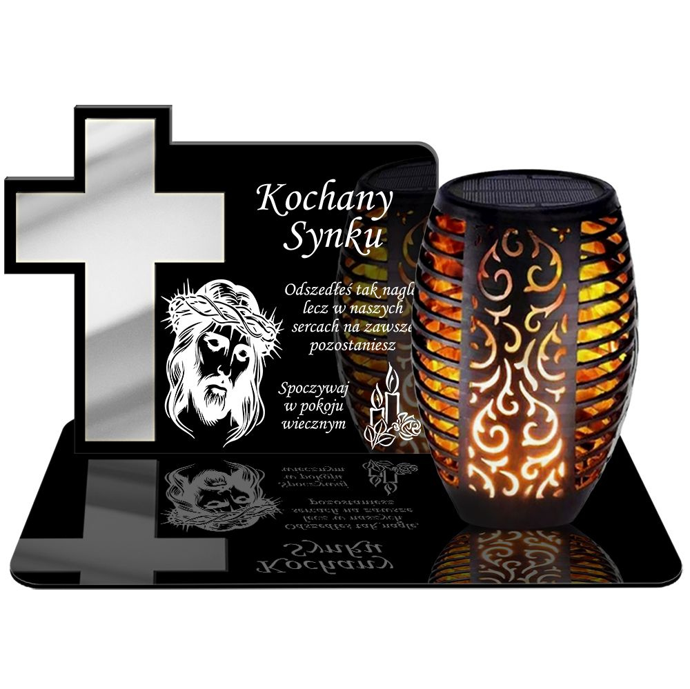 ZNICZ SOLARNY LED WIECZNY PODSTAWKA NA CMENTARZ GRÓB Krzyż EFEKT PŁOMIENIA DLA SYNKA