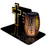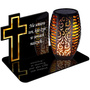 ZNICZ SOLARNY LED PREMIUM XL z złotym zdobieniem - wieczny znicz z wbudowanym czujnikiem zmierzchu i WKŁADEM Z EFEKTEM PŁOMIENIA